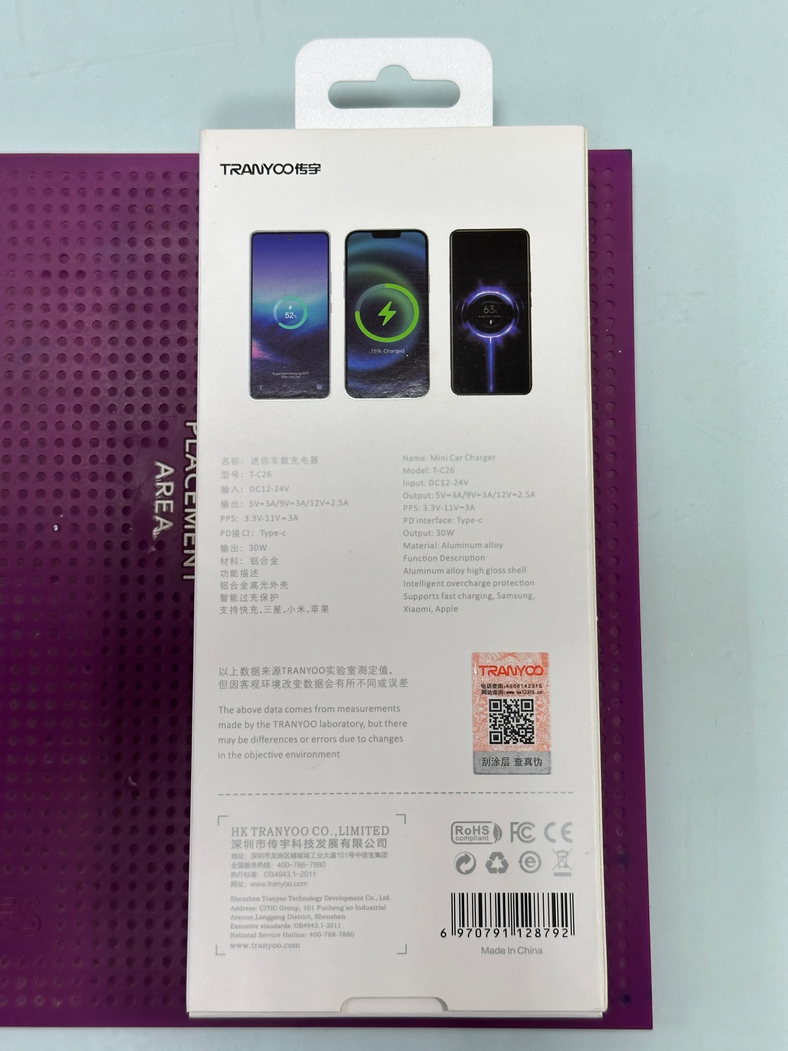 شارژر فندکی TRANYOO مدل T-C26 با توان خروجی ۳۰ وات، یک راهکار حرفهای برای شارژ سریع و ایمن انواع گوشیهای هوشمند و گجتهای دیجیتال در خودرو محسوب میشود. این شارژر دارای یک درگاه خروجی Type-C بوده که با دستگاههای جدید و فناوریهای شارژ سریع سازگاری بالایی دارد.