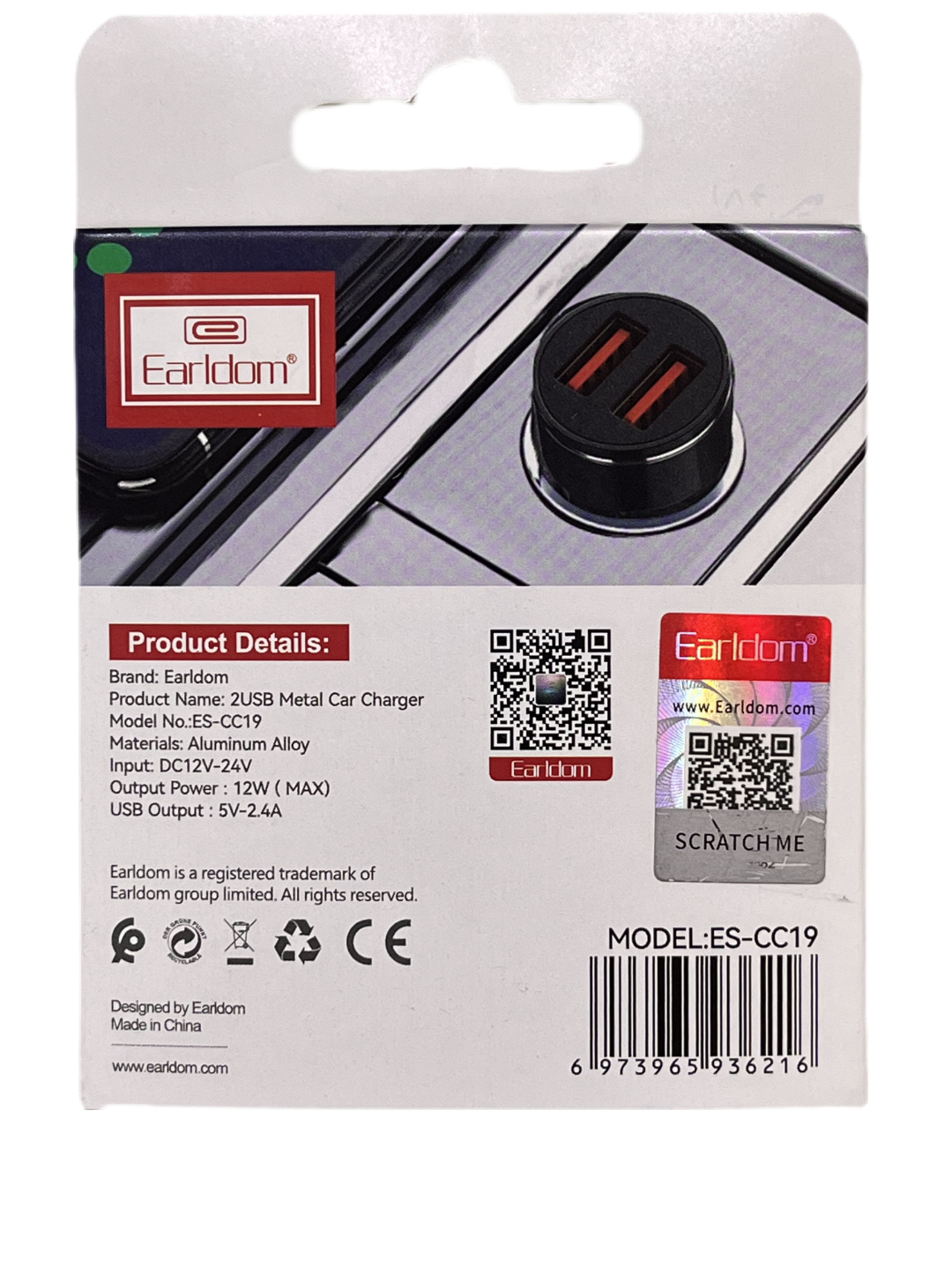 ورودی شارژر فندکی ارلدام cc_19 وات 12 به درگاه فندک ماشین وصل شده و تقریبا با تمام ماشینهای 12-24V سازگاری خواهد داشت. این شارژر دارای دو پورت USB بوده که می توانید گوشی و دستگاه های خود را شارژ کنید.